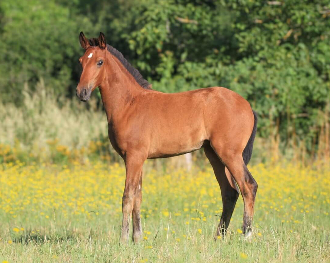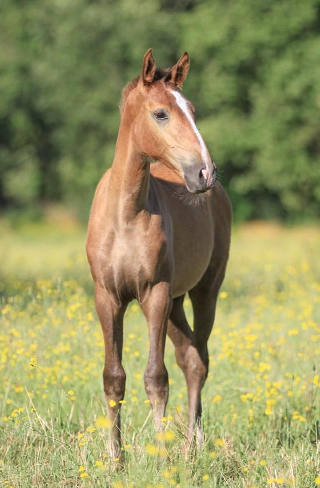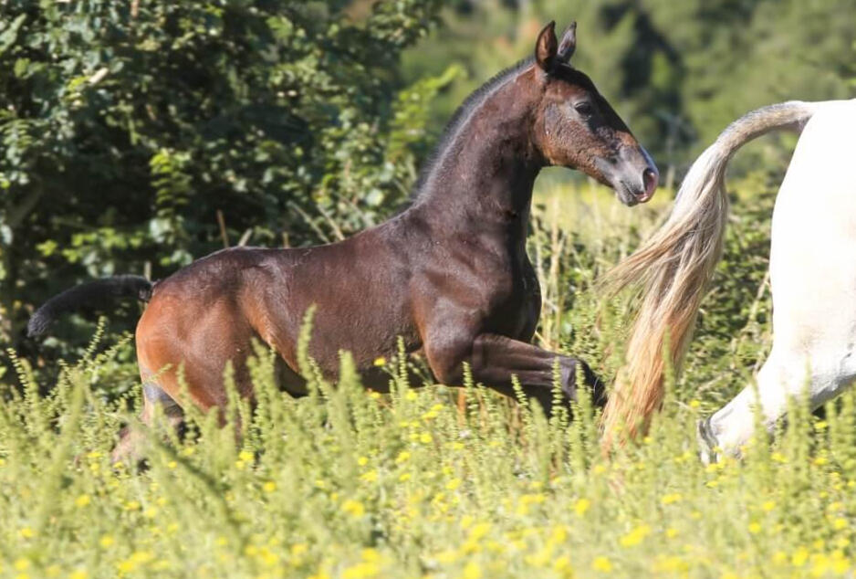 Breed characteristics: from its ancient origins as a war horse, horse of triumphs and horse of kings, the PRE has retained the poise, control and emotional stability that perfectly express its beauty.In addition to the Spaniard’s distinctive silhouette and elevated gaits, Bernad breeding seeks forward projection in gaits and functionality essential for sport riding.Today, Trinidad de Bruguière is the filly that best reflects the Bernad breeding philosophy. She represents the future and fits in perfectly with the vision of Pure Spanish Horse breeding as we like it at Haras de Bruguière.